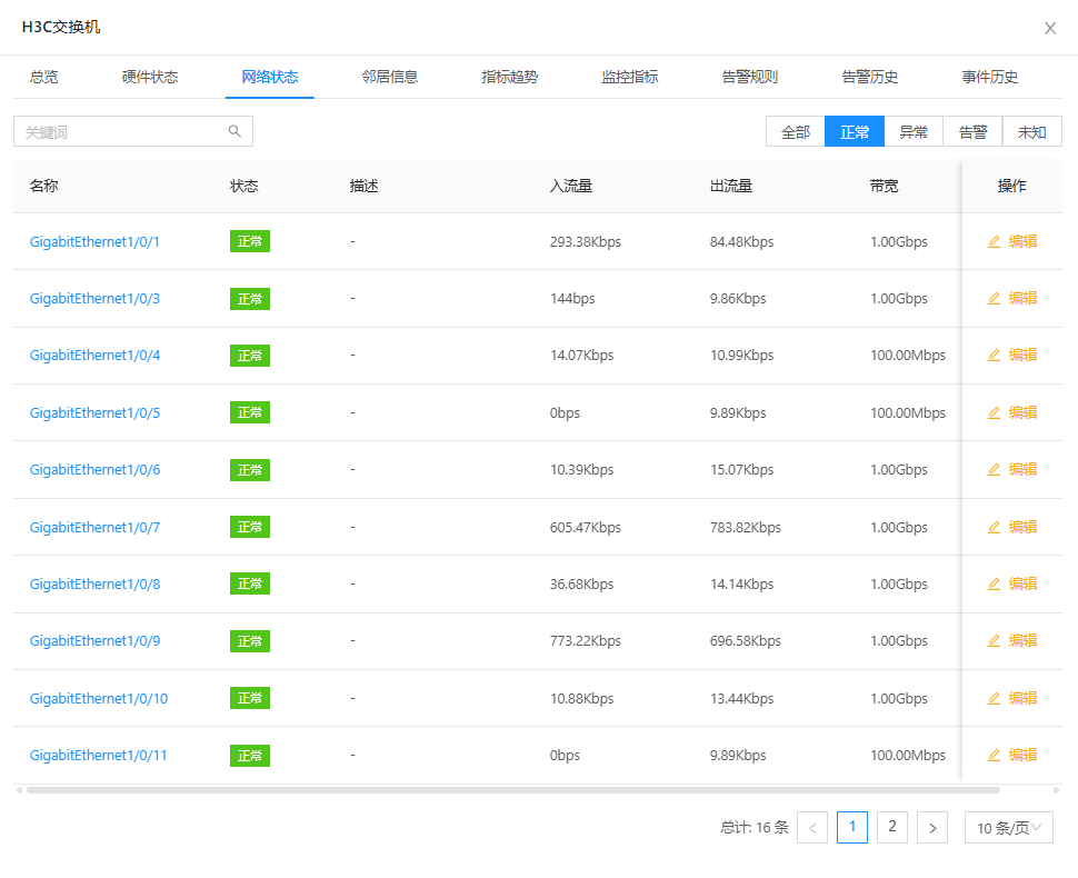 端口状态:监控交换机端口的物理和逻辑状态,包括端口的连接状态、速率、双工模式等。确保端口正常工作,避免端口故障导致的网络中断。