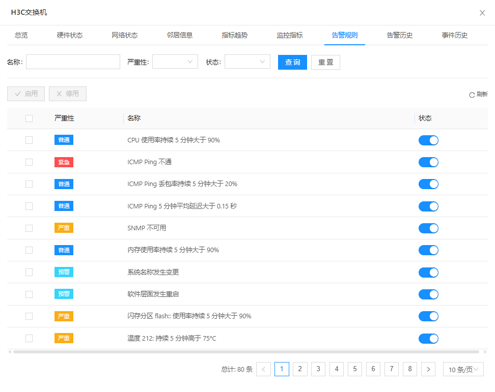 全面监控:从基础状态、可靠性到性能,全方位掌握交换机运行状态。