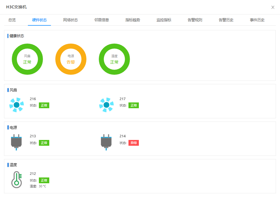 风扇状态:风扇是交换机散热的重要部件,监控风扇状态可以确保其正常运转,防止交换机因过热而损坏。
