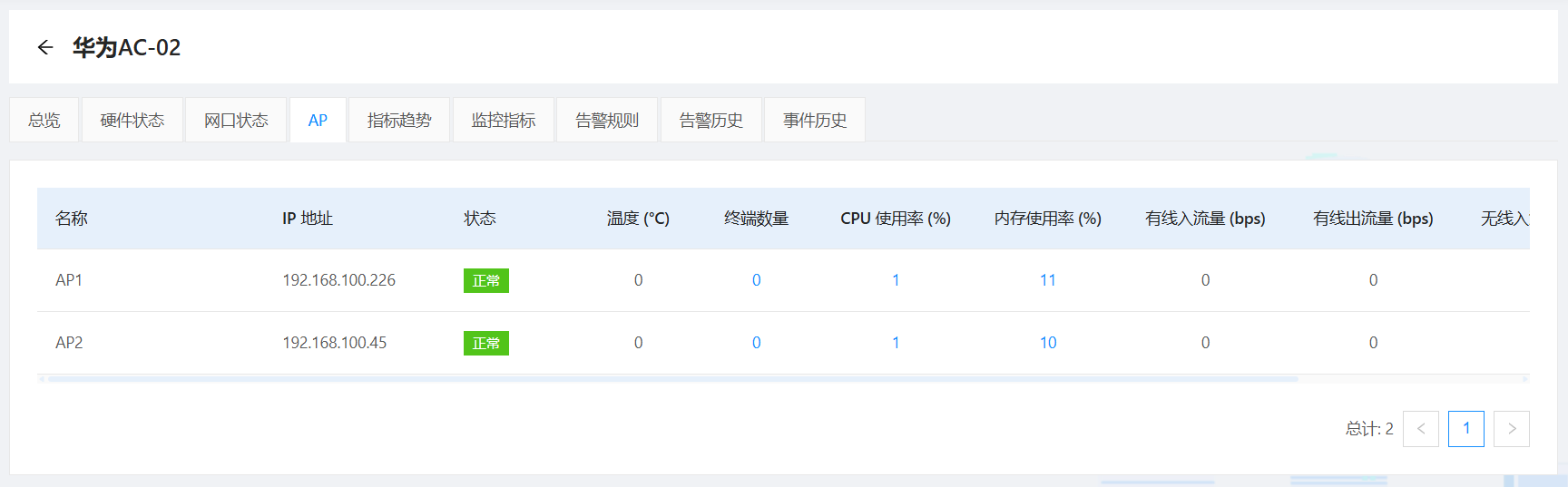 在性能指标采集方面,OpsEye 也十分出色。对于 AC 的带宽利用率,能精准掌握其网络资源的使用情况;对于 AP,可详细采集接入设备数,判断 AP 的负载程度。这些数据被采集后,OpsEye 会以直观的图表形式展现,让管理员对网络状态一目了然。